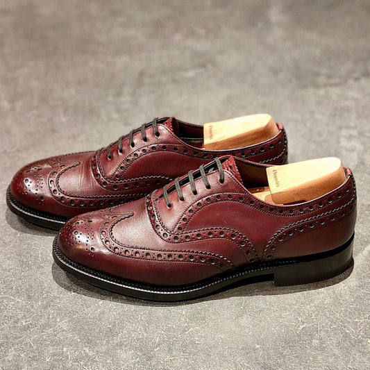 希少 使用数回 【Church´s】チャーチ バーウッド MTO 5都市 ウイングチップ カーフ バーガンディ サイズUK65F 81ラスト 参考定価¥176,000-