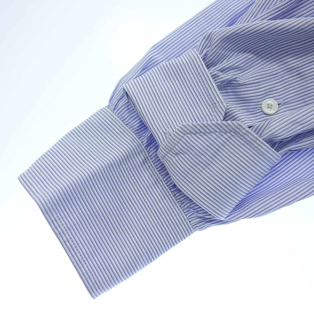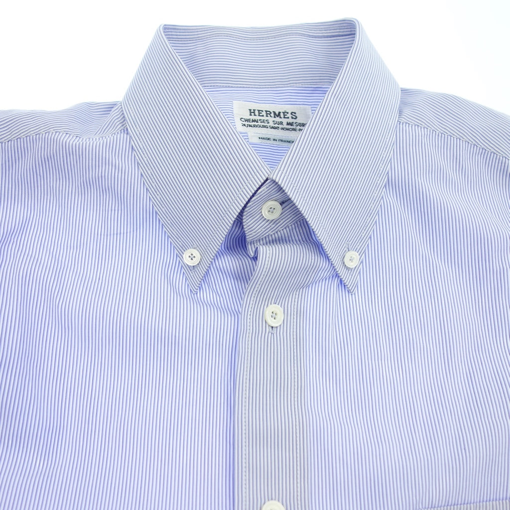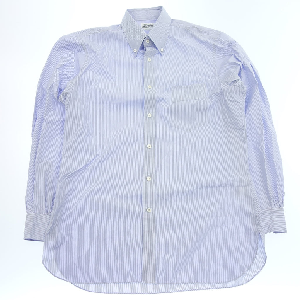 【HERMES】エルメス ストライプボタンダウンシャツ フランス製 セリエボタン サックスブルー サイズ L程度