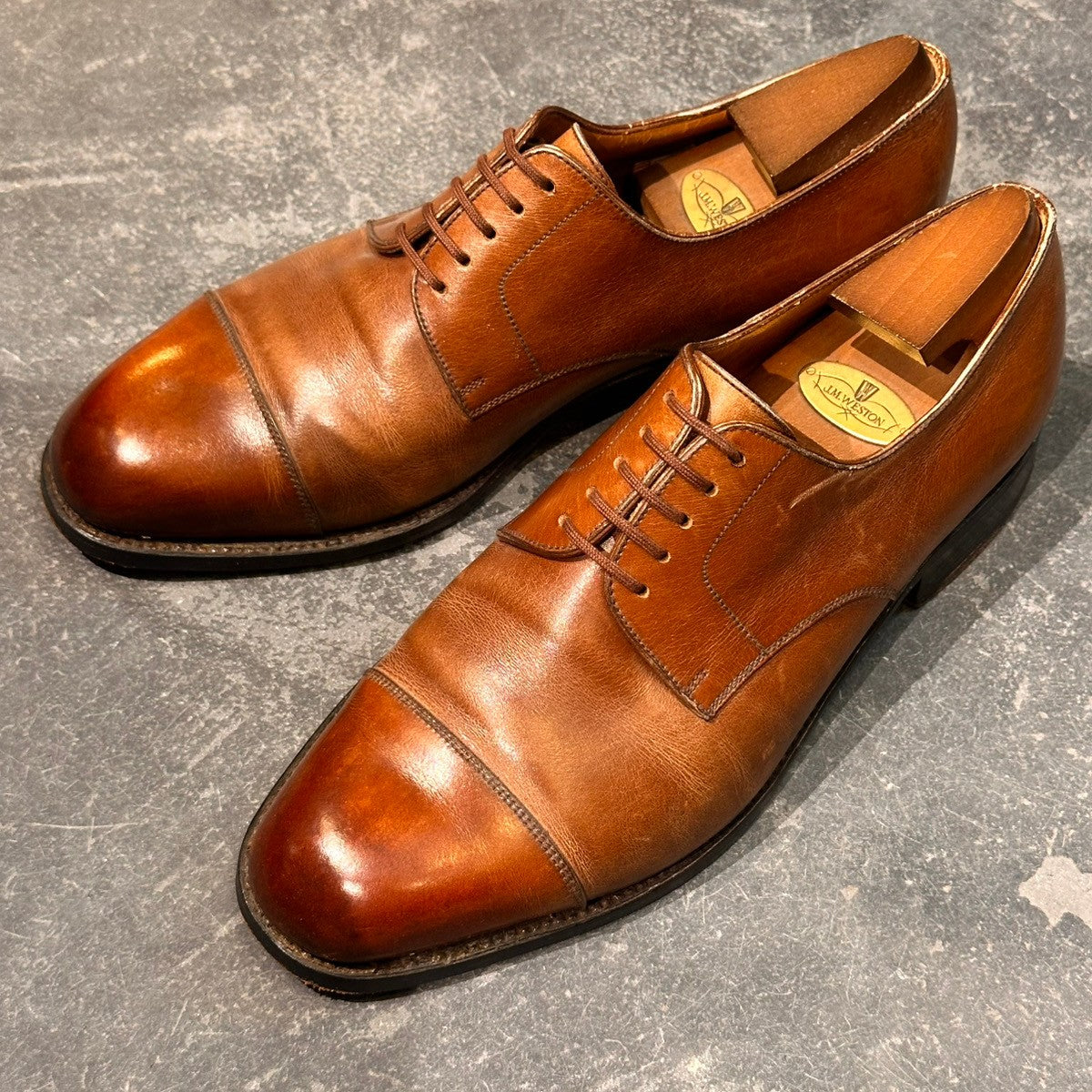 【J.M.WESTON】ジェイエムウエストン 500 ストレートチップ 旧ロゴ カーフ ブラウン サイズUK6.5 61ラスト