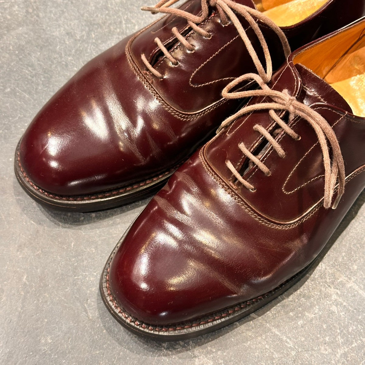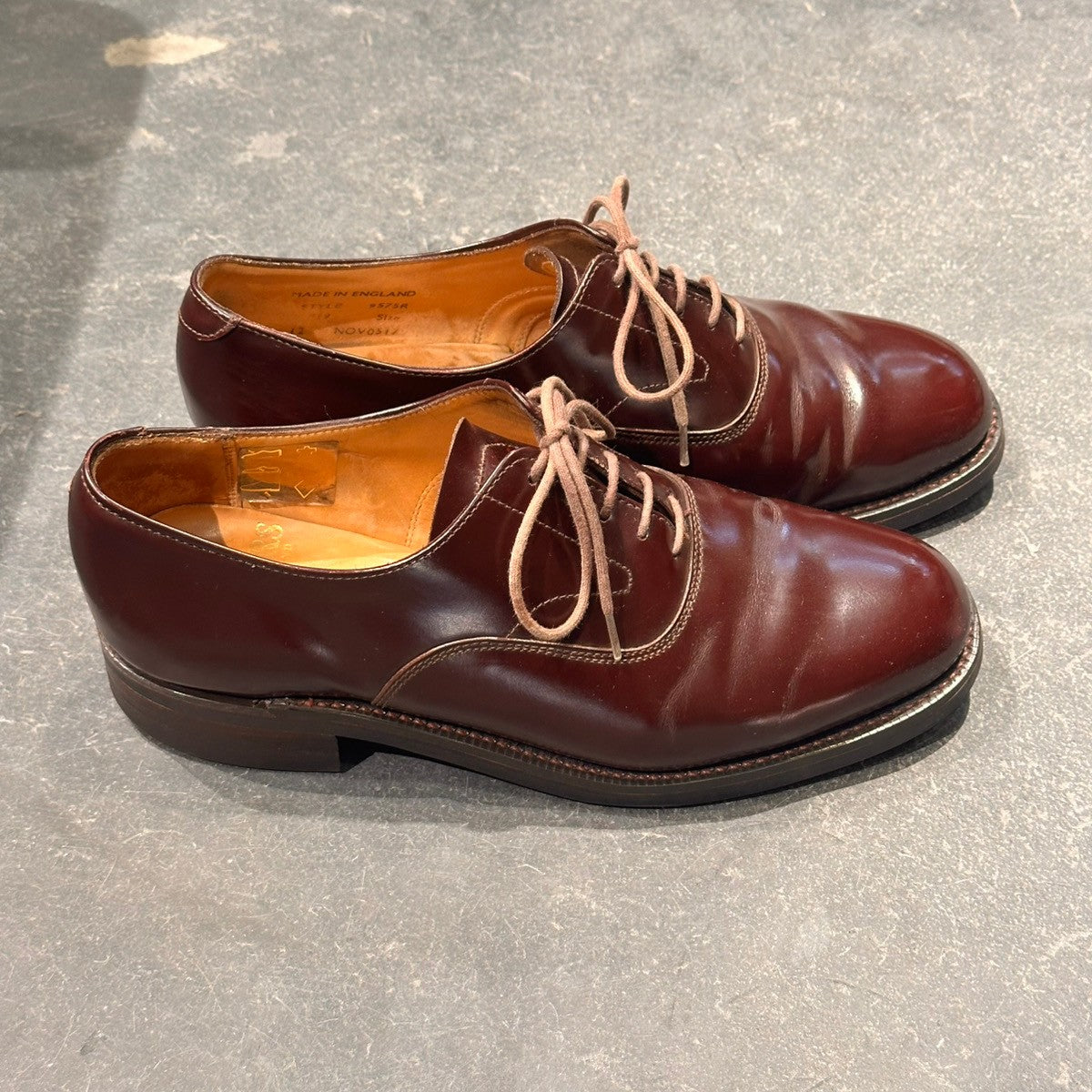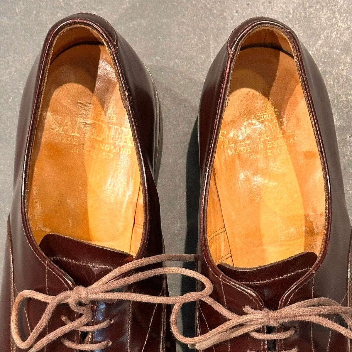 【SANDERS】サンダース 9575R プレーントゥ ガラスレザー バーガンディ サイズ表記無し(UK7相当)
