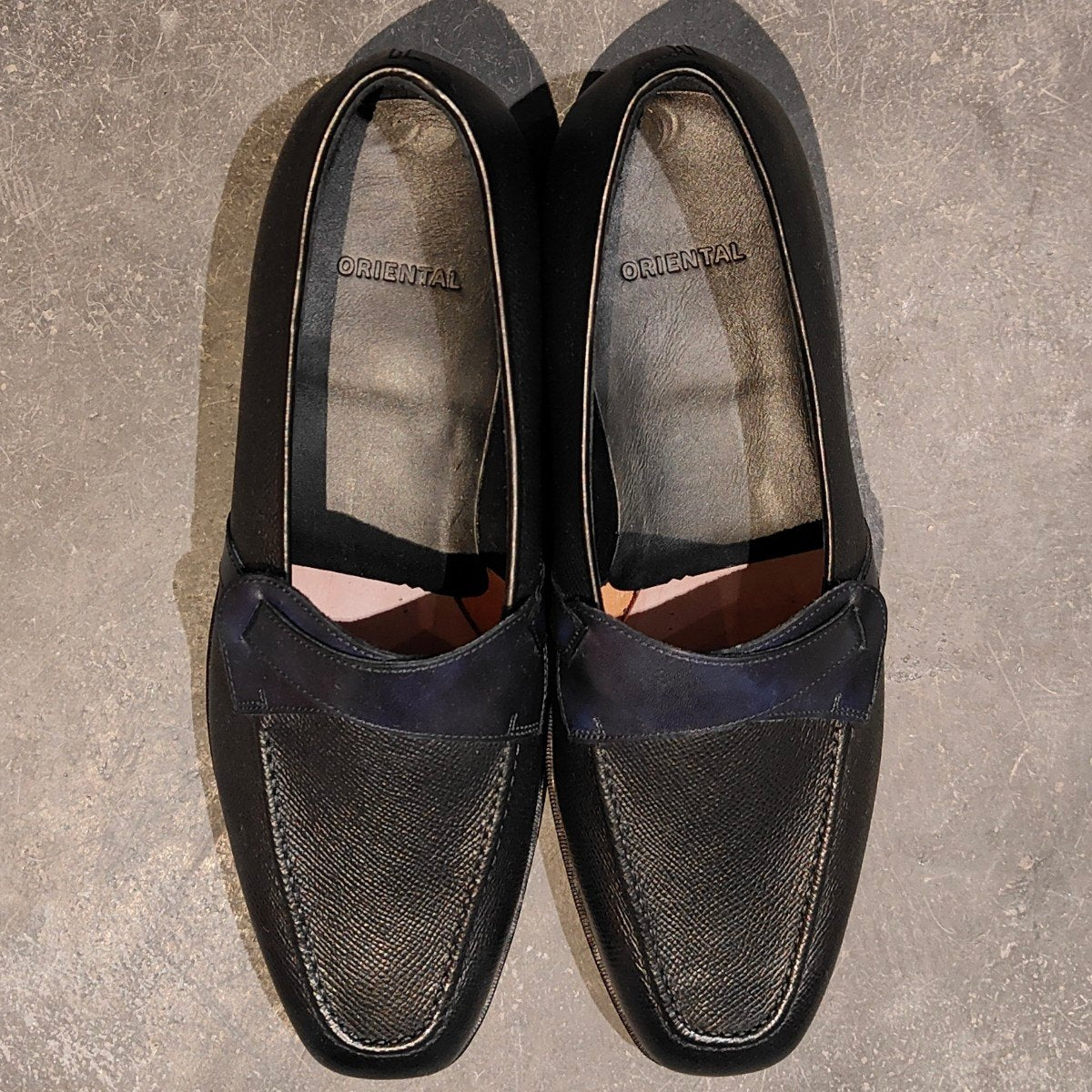 新品未使用【ORIENTAL】オリエンタル 8500 バタフライローファー グレインレザーカーフコンビ ブラックブルー サイズ US7.5