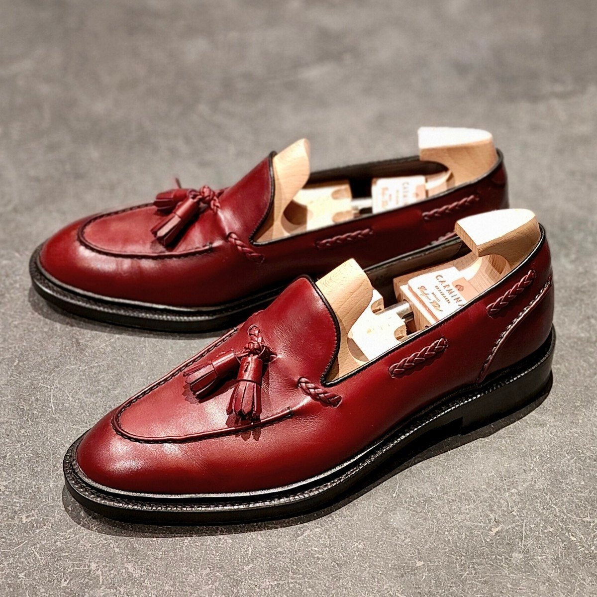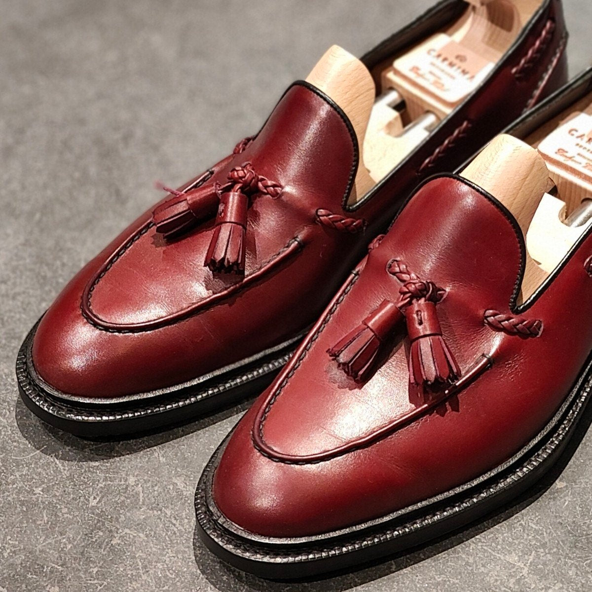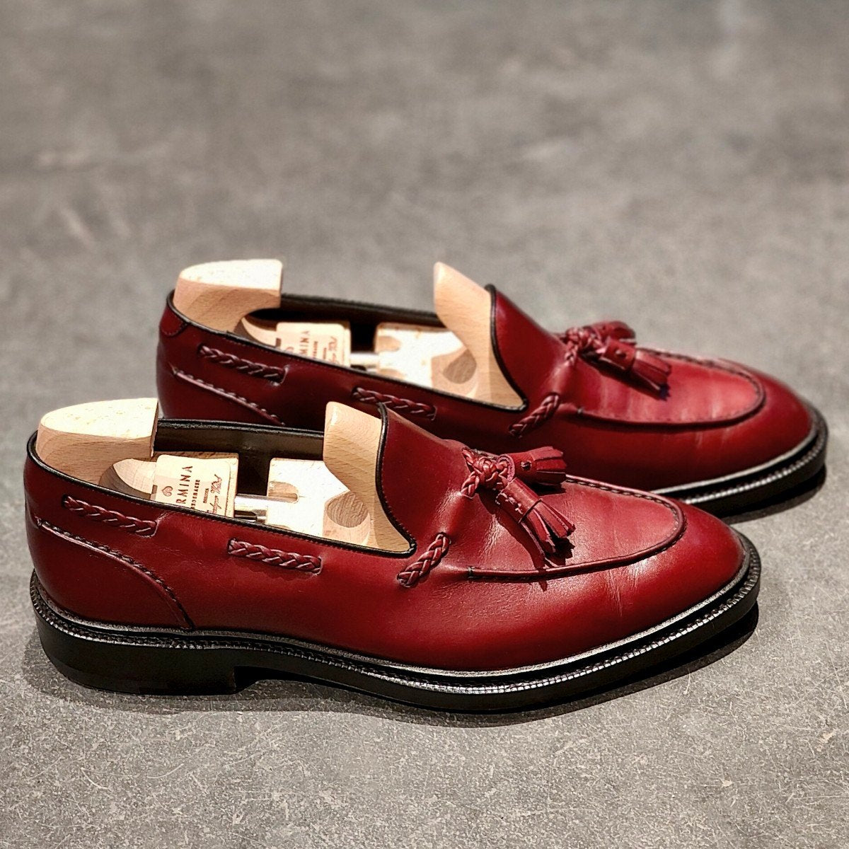「 極美品【CARMINA】カルミナ タッセルローファー カーフ バーガンディ ウェタムE サイズUK6.5 」