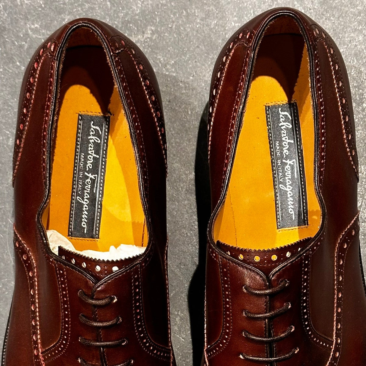 未使用品【Salvatore Ferragamo】サルヴァトーレ フェラガモ 3828 セミブローグ カーフ ブラウン サイズUK8.5E