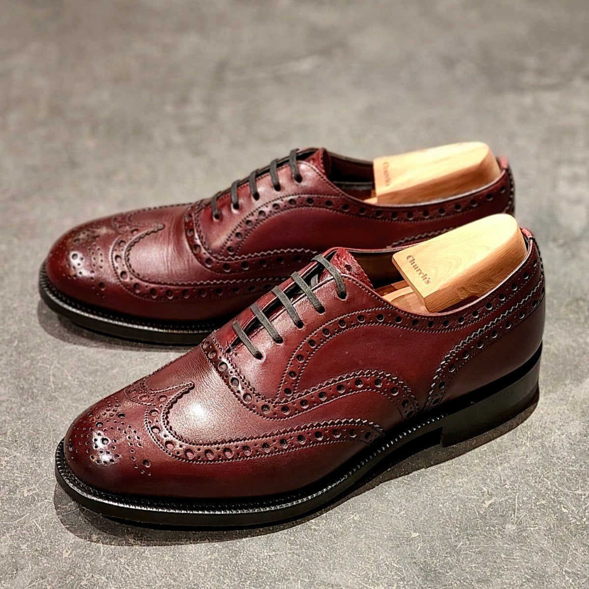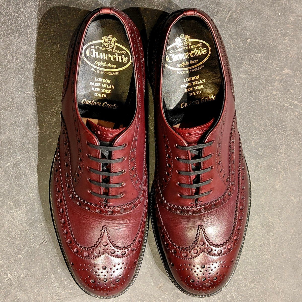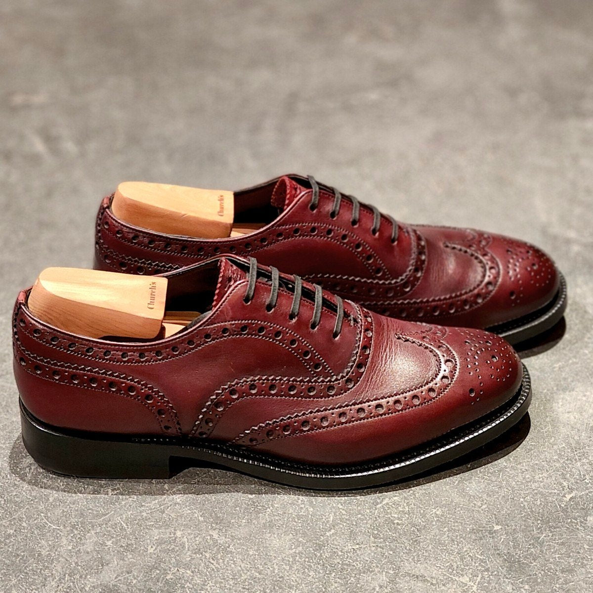 希少 使用数回 【Church´s】チャーチ バーウッド MTO 5都市 ウイングチップ カーフ バーガンディ サイズUK65F 81ラスト 参考定価¥176,000-