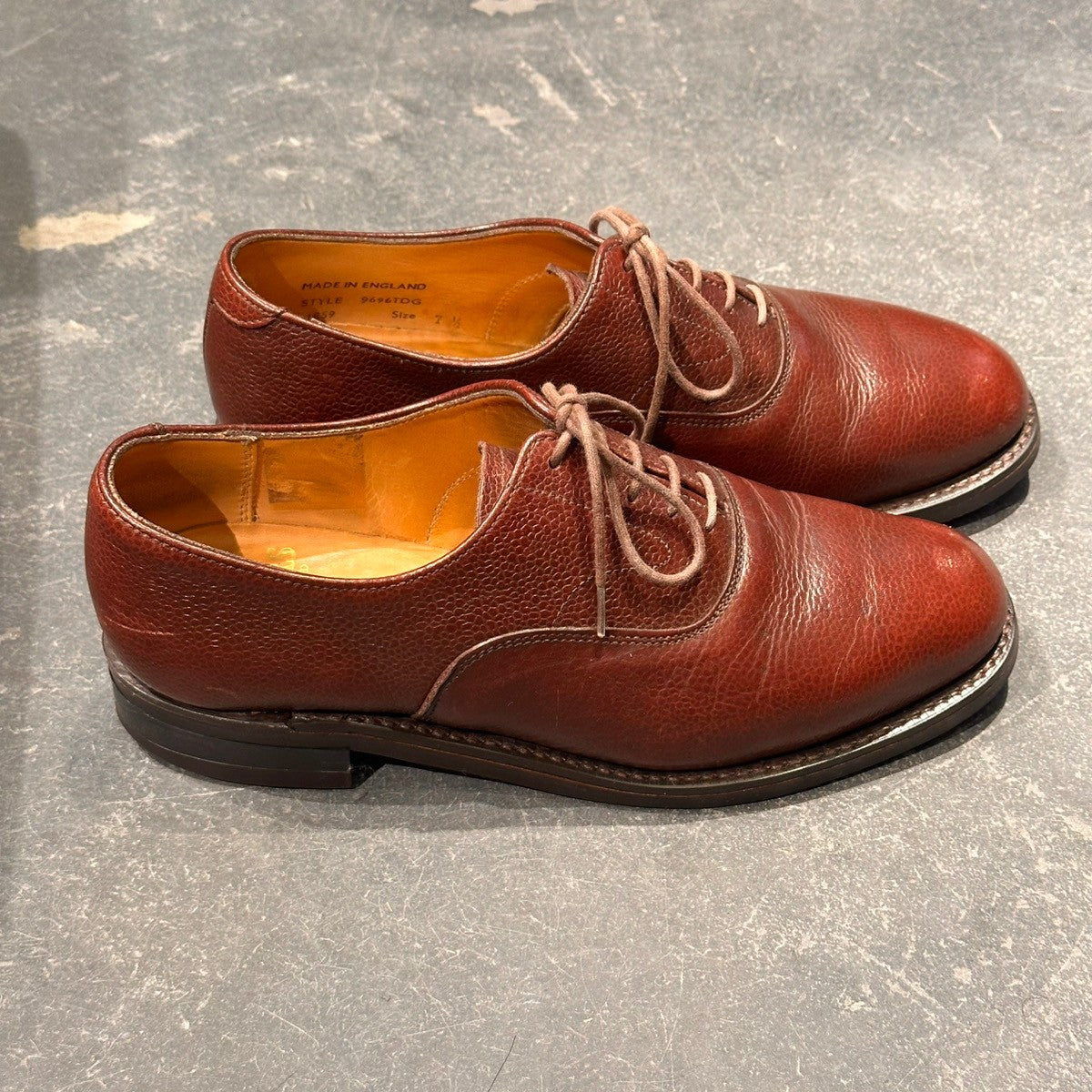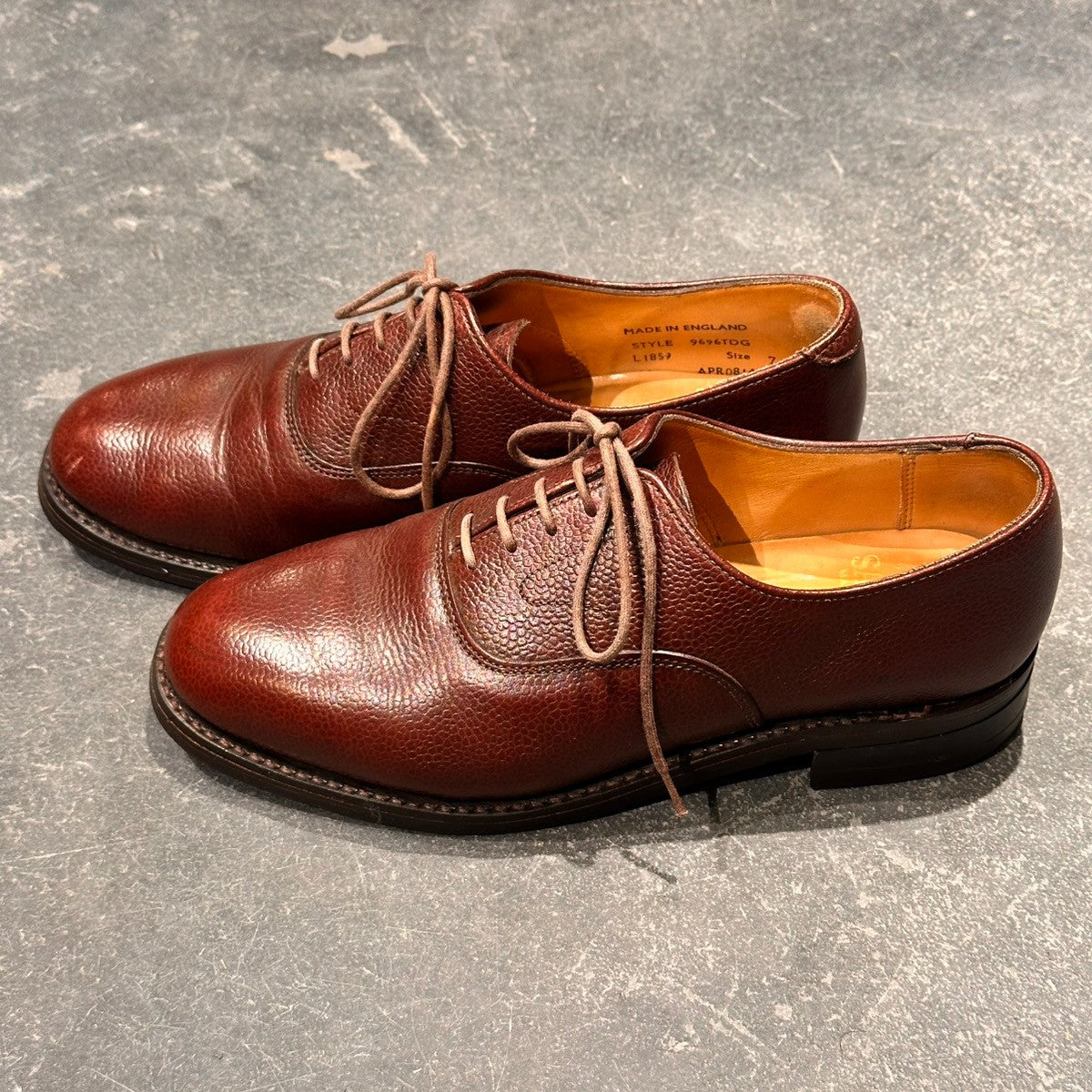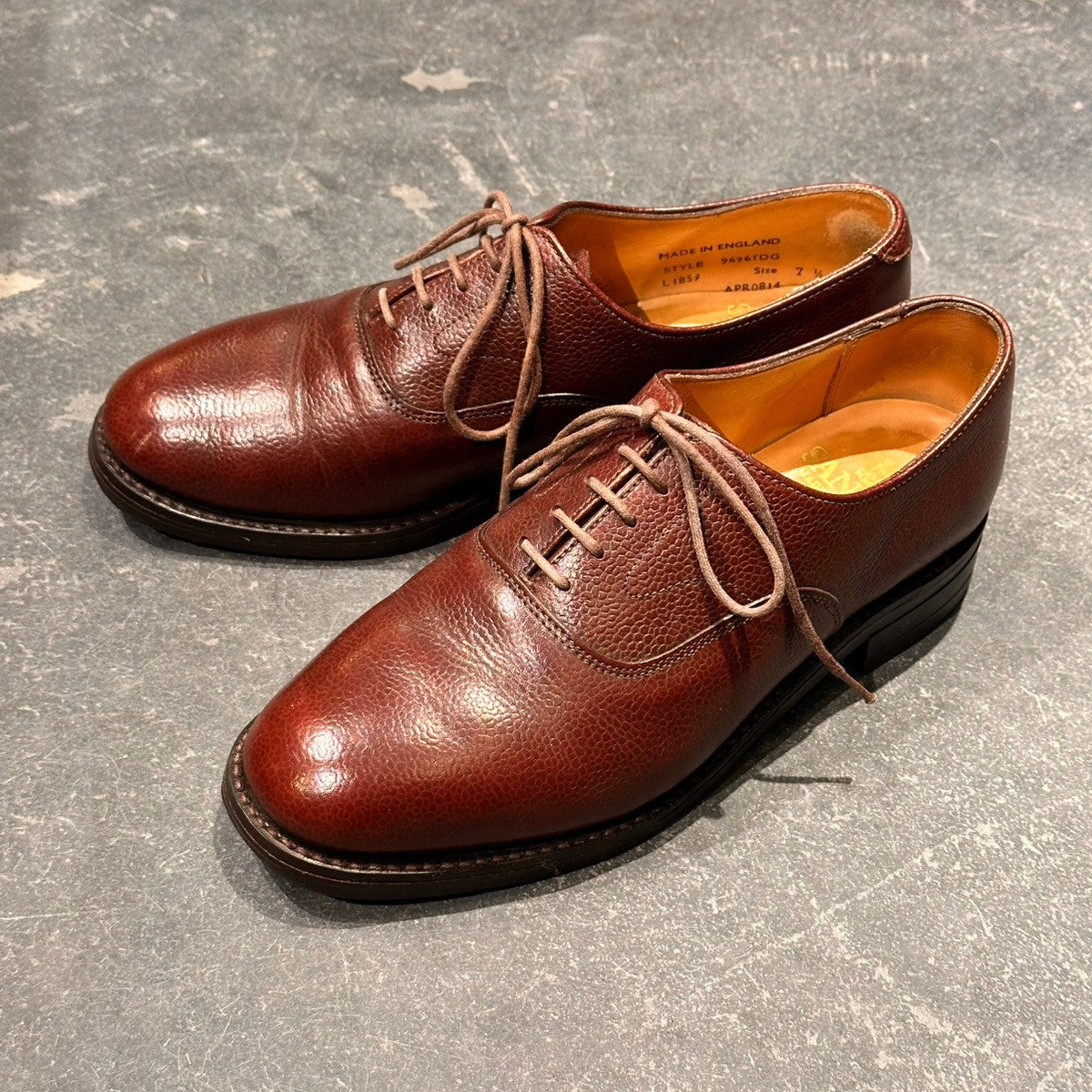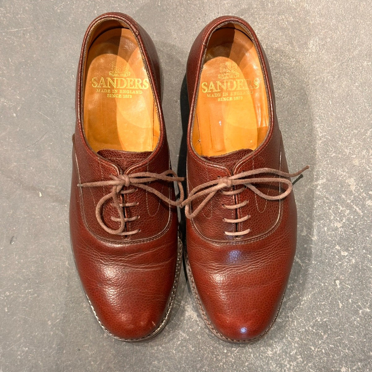 【SANDERS】サンダース 9696TDG プレーントゥ 内羽根 グレインレザー バーガンディ サイズUK7.5