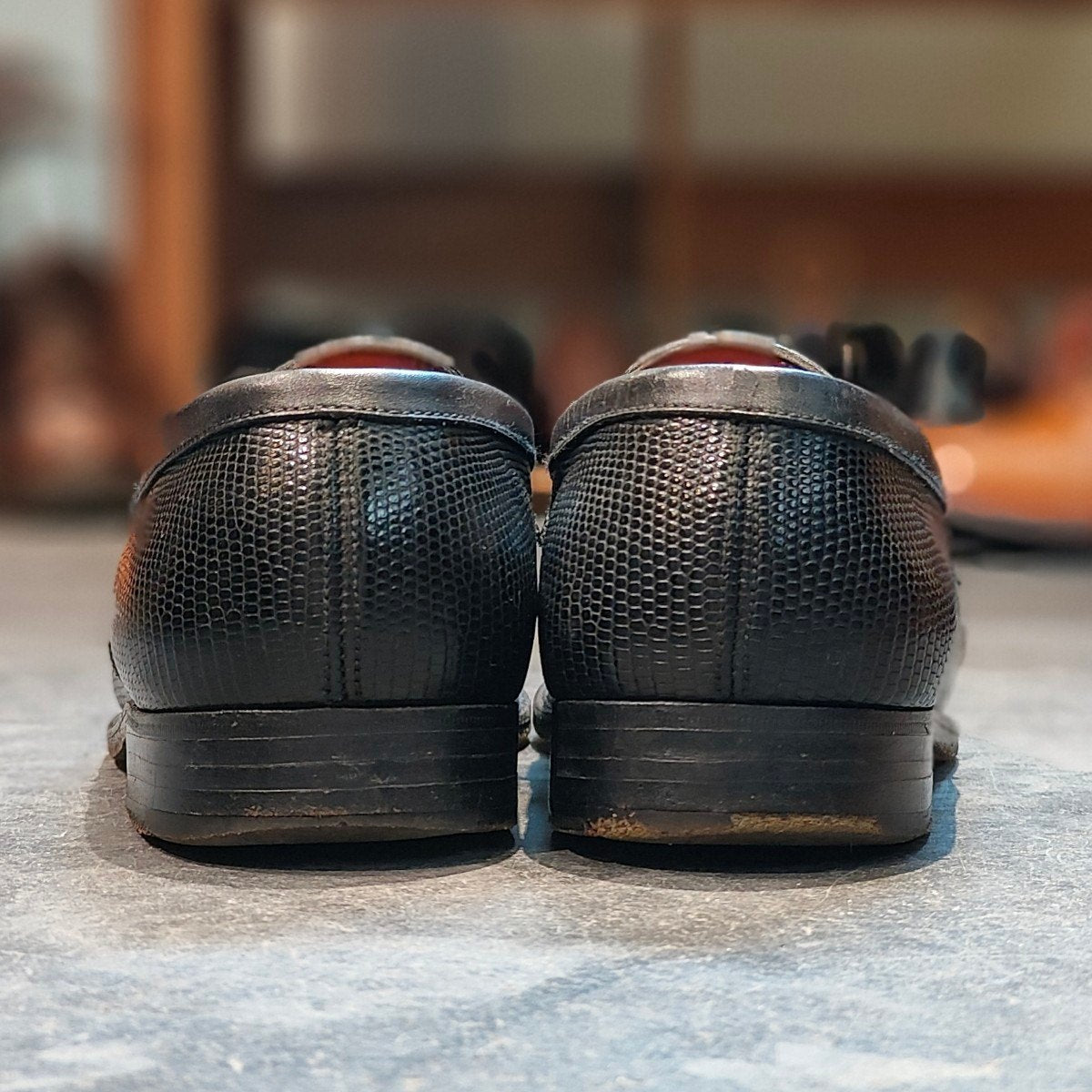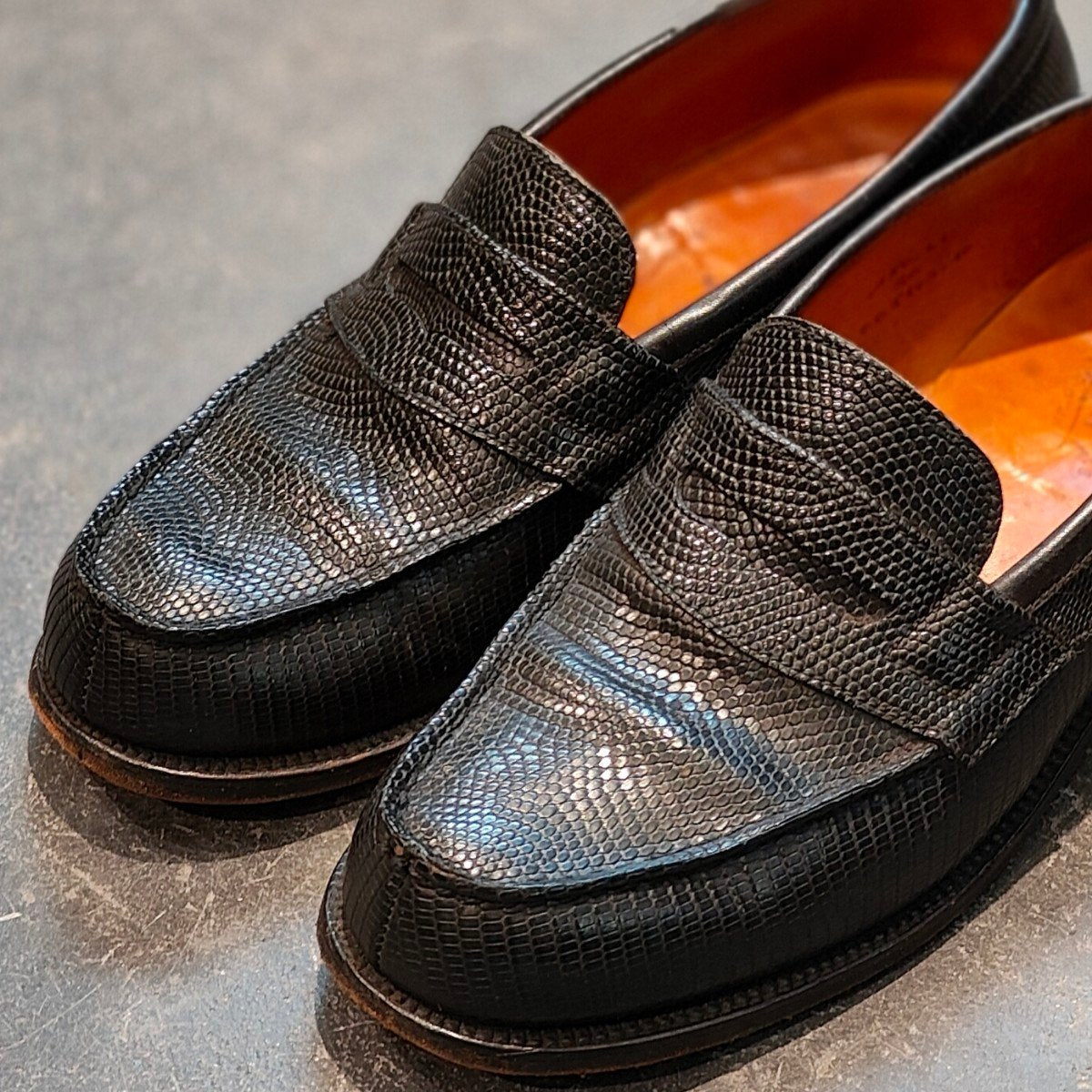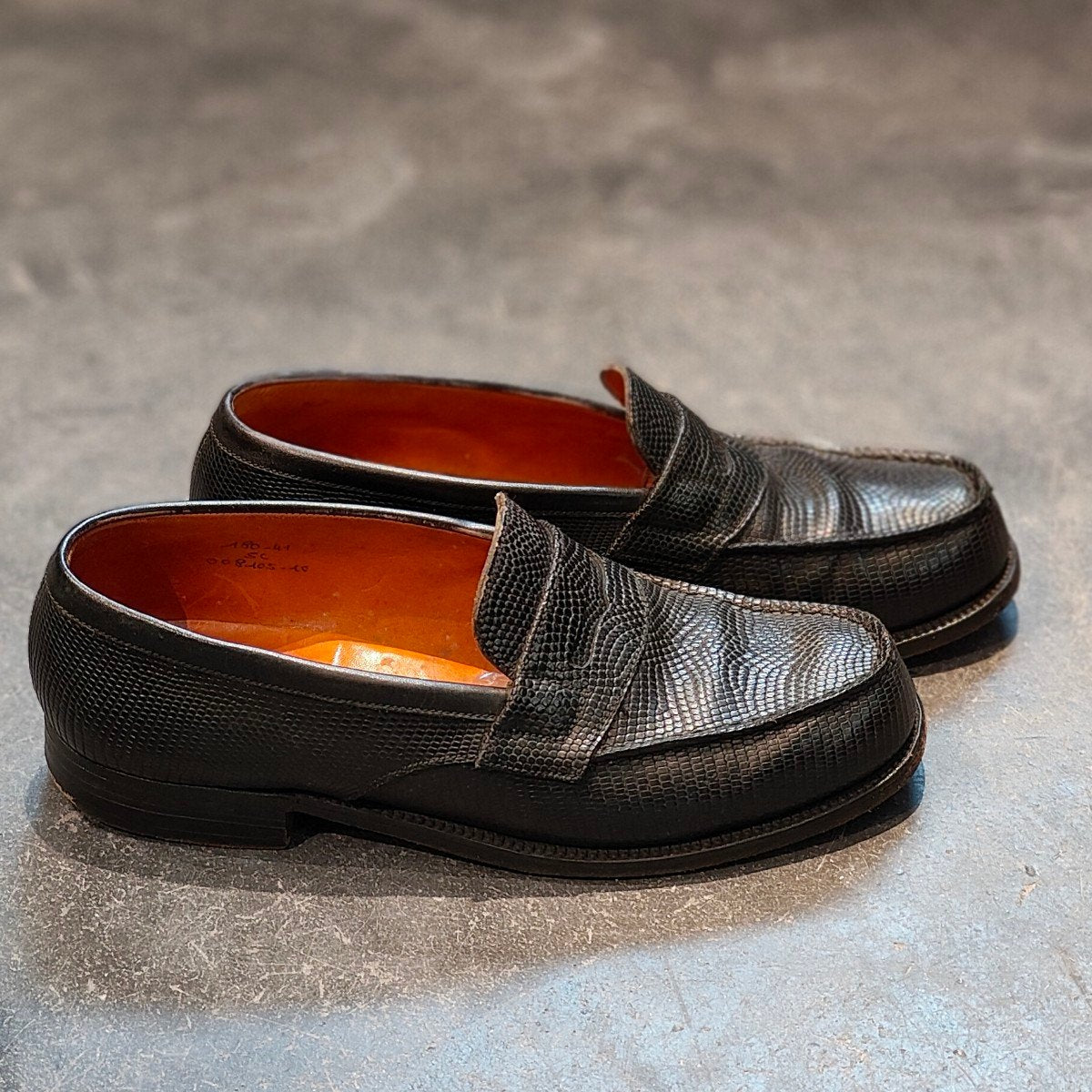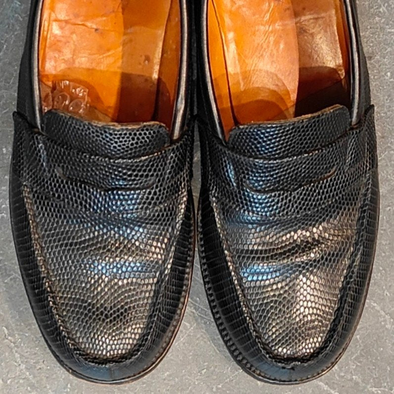 希少 【J.M.WESTON 】ジェイエムウエストン180 シグニチャーローファー リザード 旧旧旧ロゴ ブラック サイズUK5C 41ラスト 参考定価¥363,000-