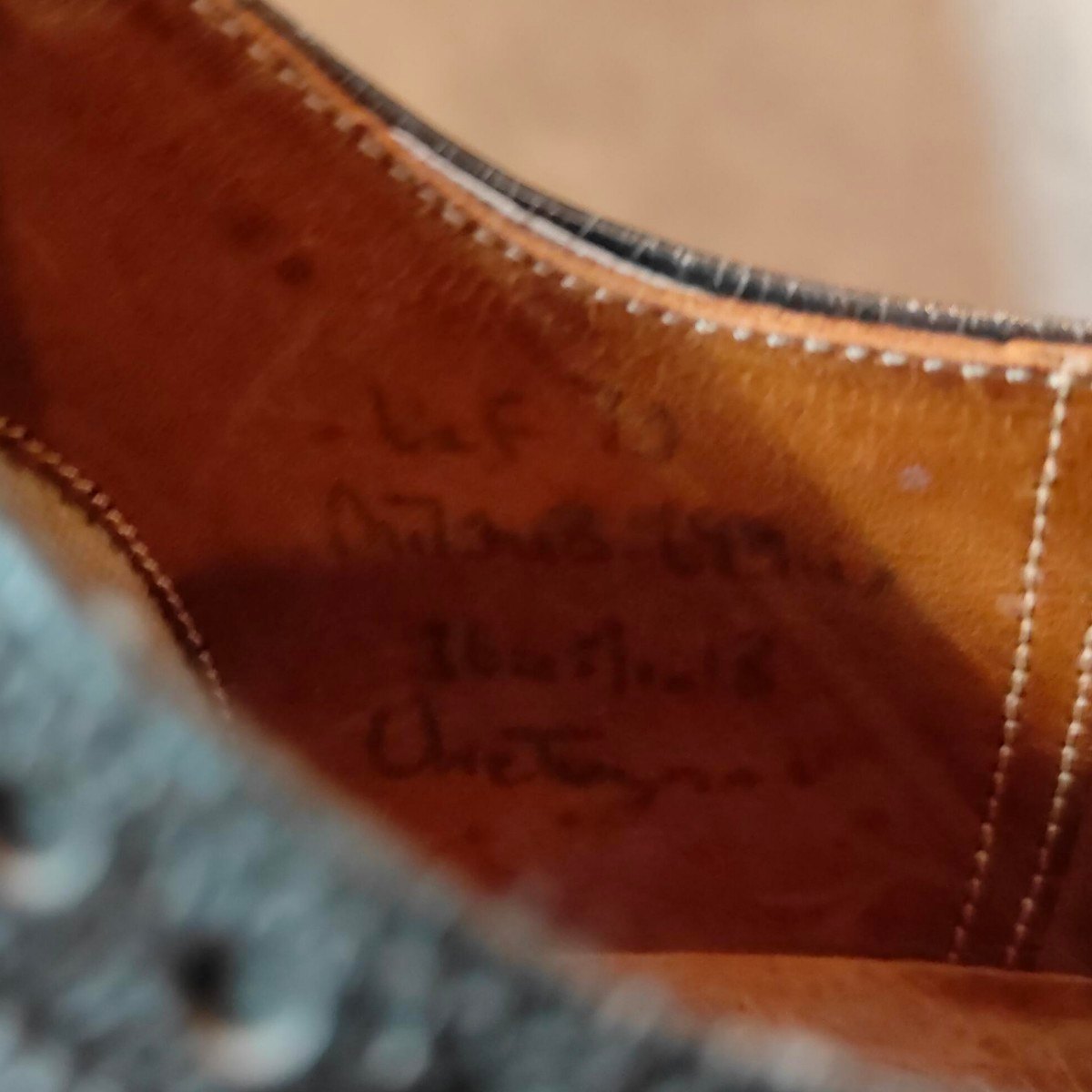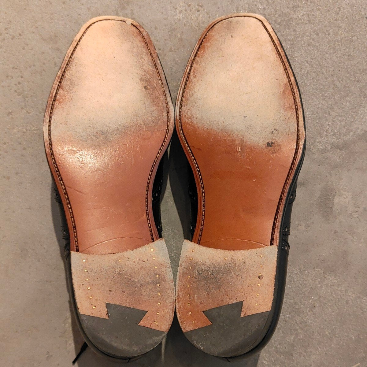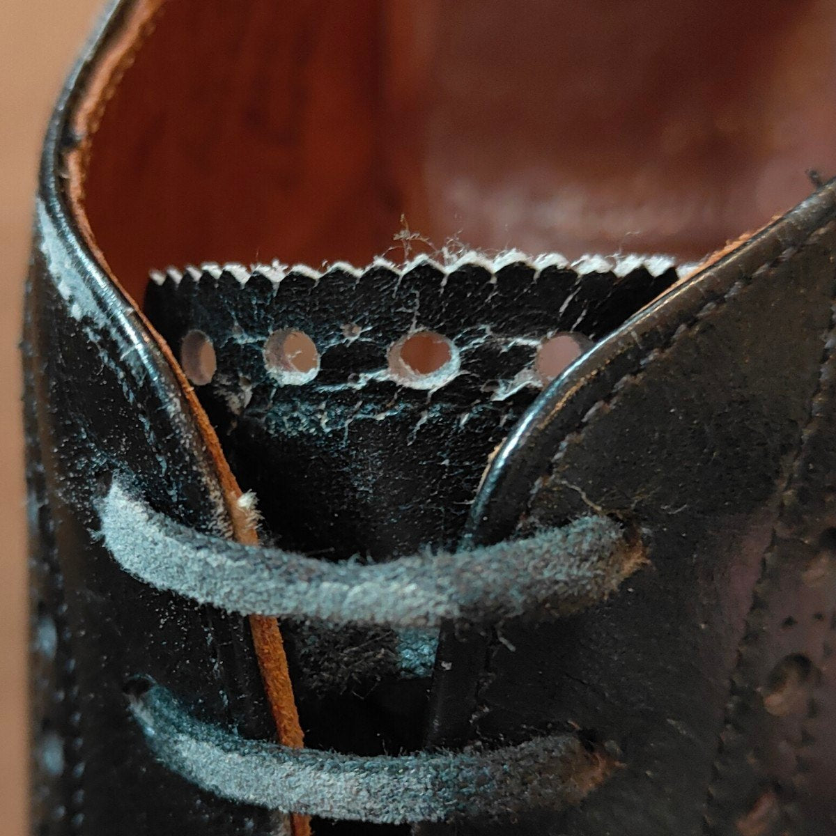 履き皺、カカト減り、インソールスレ、タン部分のメダリオン若干の破れあり、オールソール交換あり