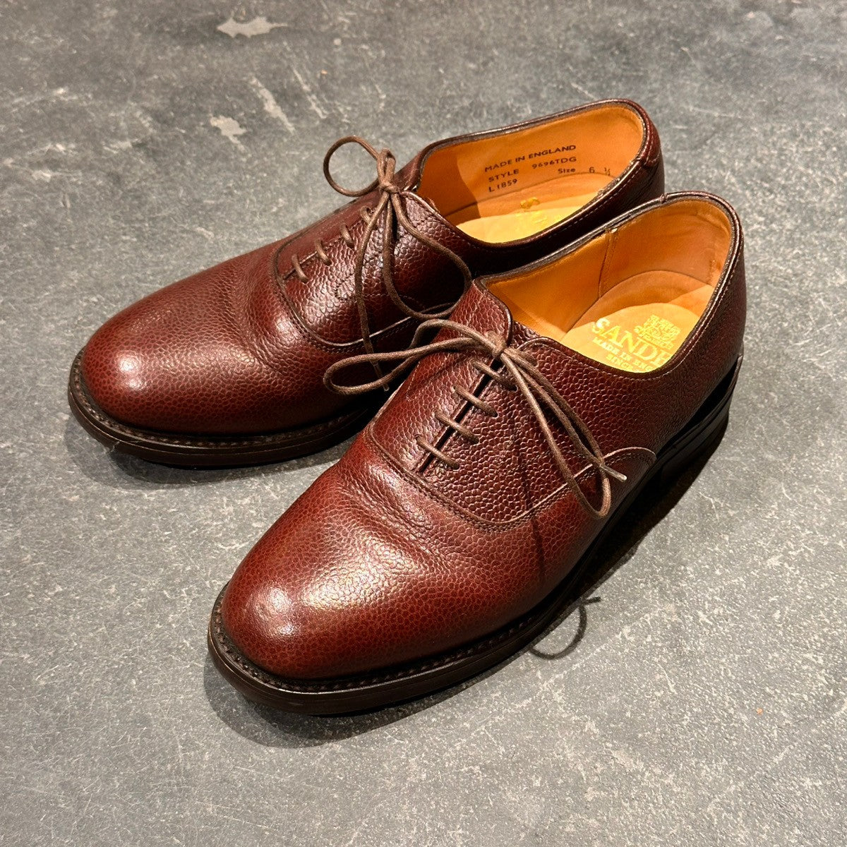 【SANDERS】サンダース 9696TDG プレーントゥ 内羽根 グレインレザー バーガンディ サイズUK6.5