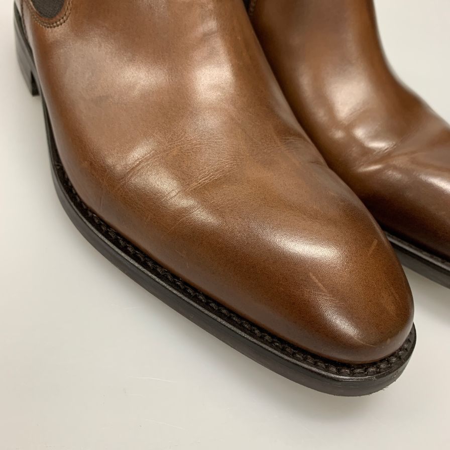 履き皺や小傷(画像参照)が見られます。履きシワ、多少のカカト減り、トゥ弱擦れが見られます。