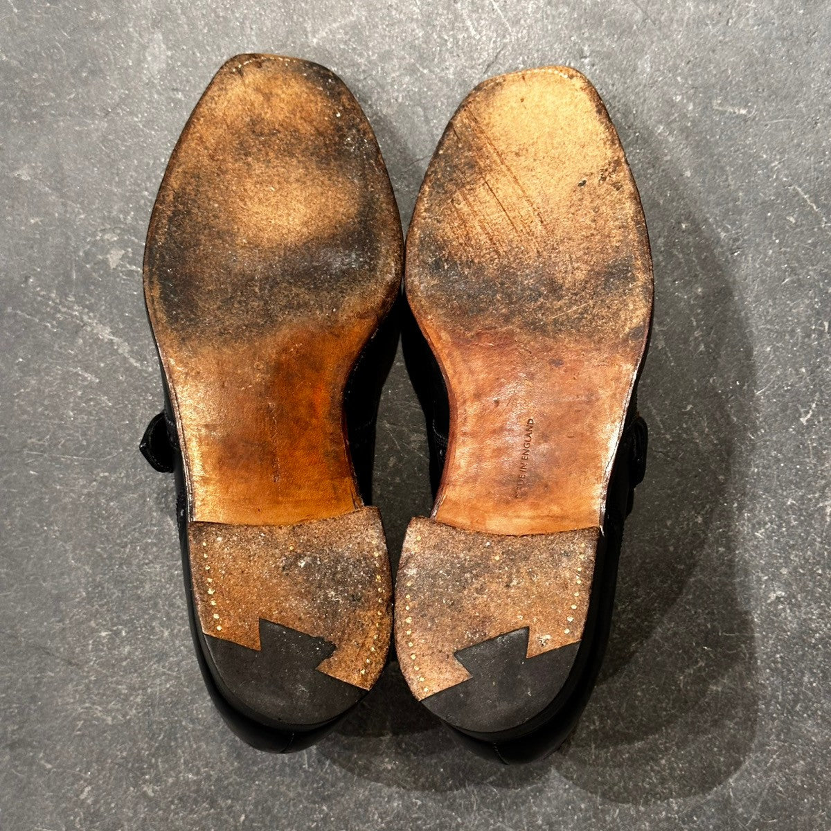 希少【Poulsen Skone】ポールセーンスコーン ダブルモンク クロケット&ジョーンズ製 70年代想定 カーフ ネイビー サイズUK8E