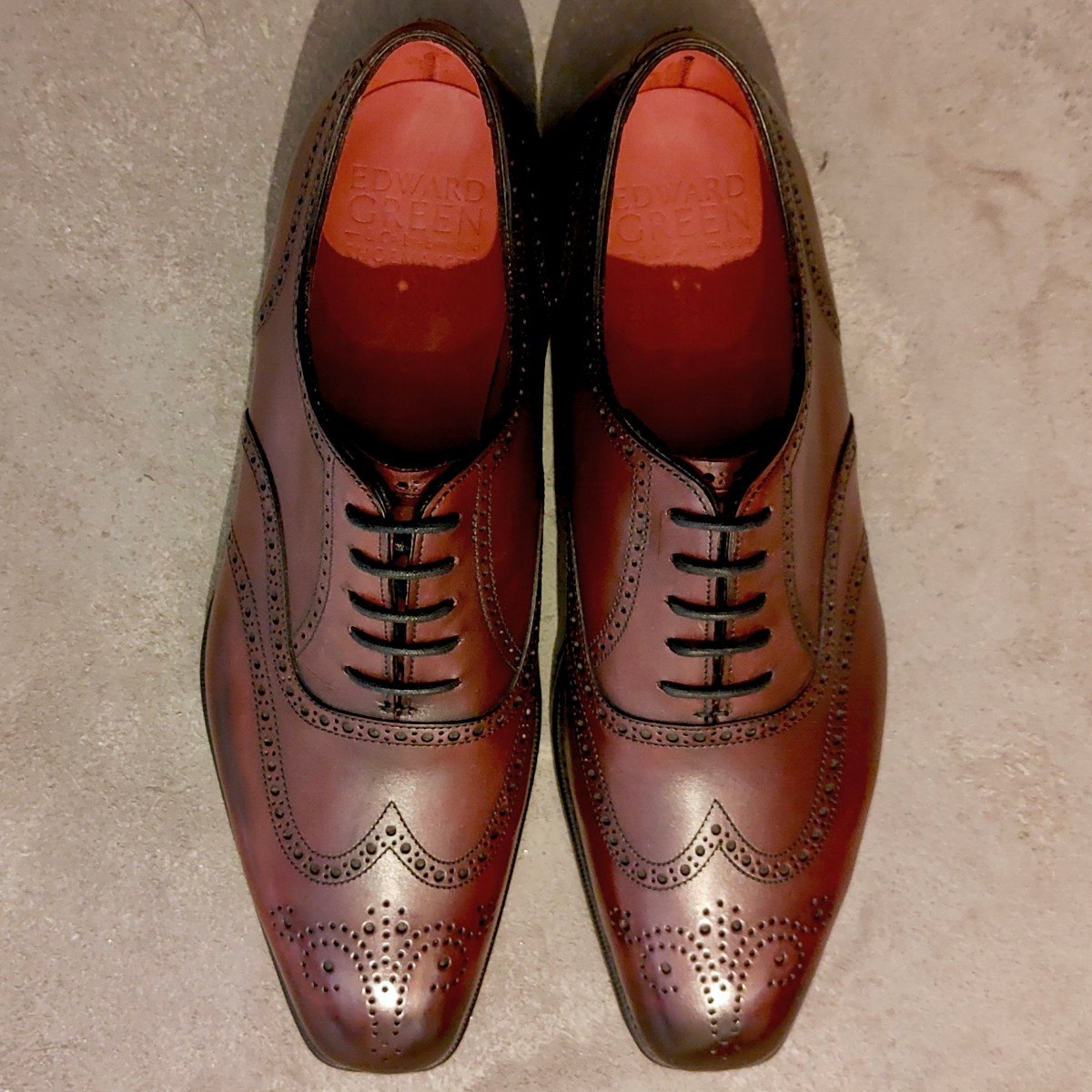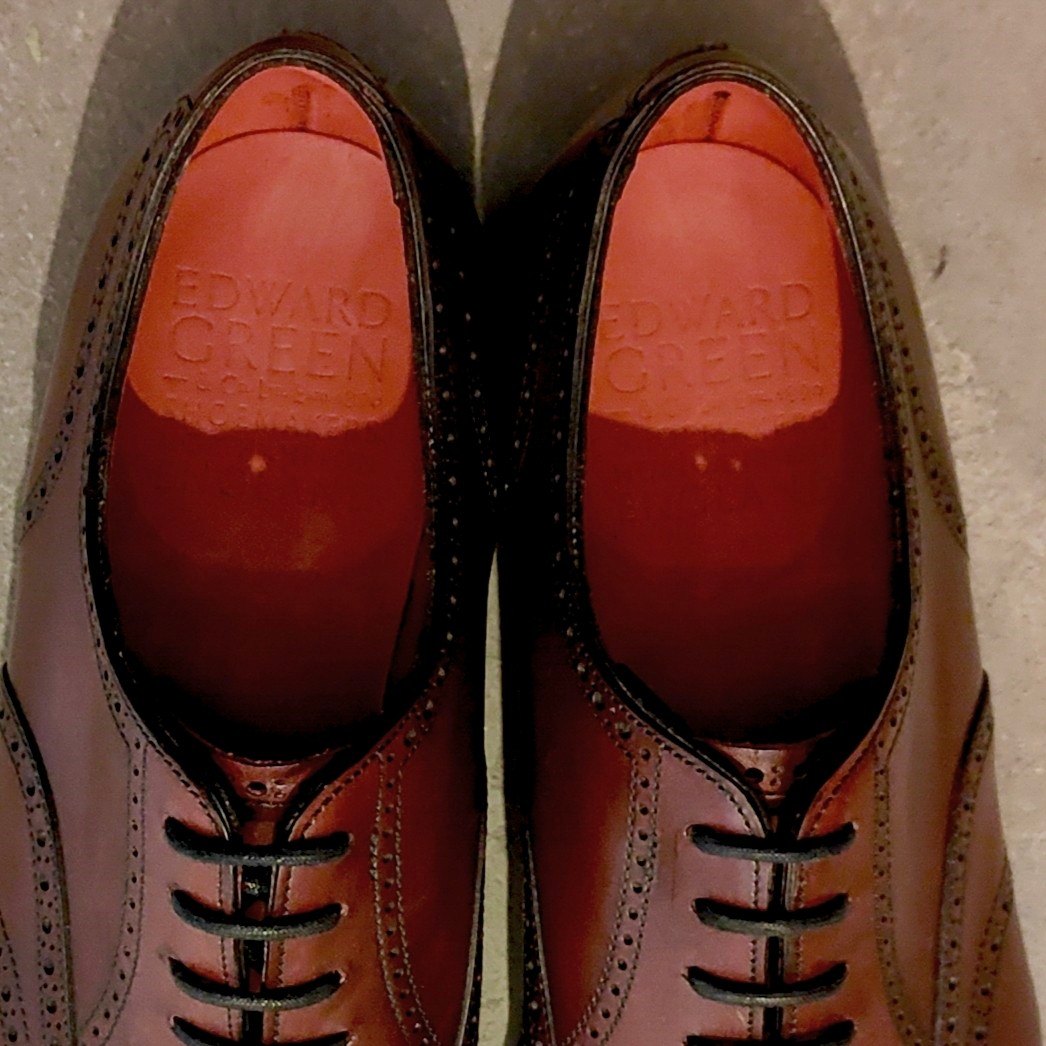 試着程度【EDWARD GREEN】エドワードグリーン インバーネス ウイングチップ カーフ バーガンディアンティーク サイズUK6.5D 888ラスト
