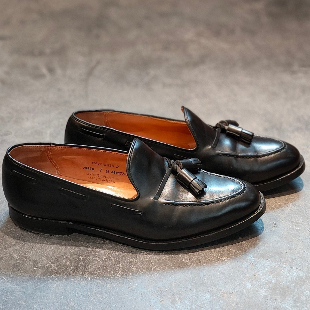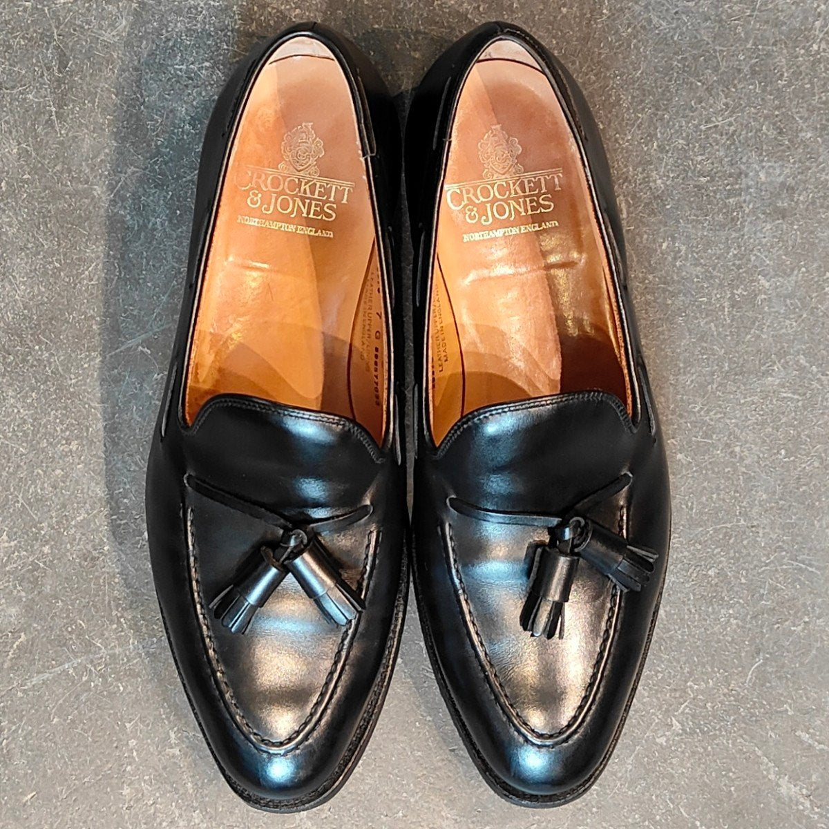 美品【CROCKETT&JONES】クロケット&ジョーンズ キャベンディッシュ2 タッセルローファー カーフ ブラック サイズUK7G 337ラスト