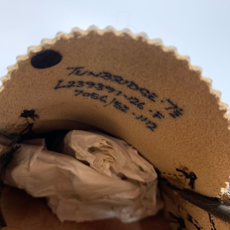 履き皺や小傷(画像参照)が見られます。履きジワ弱、内側にシミが見られます。