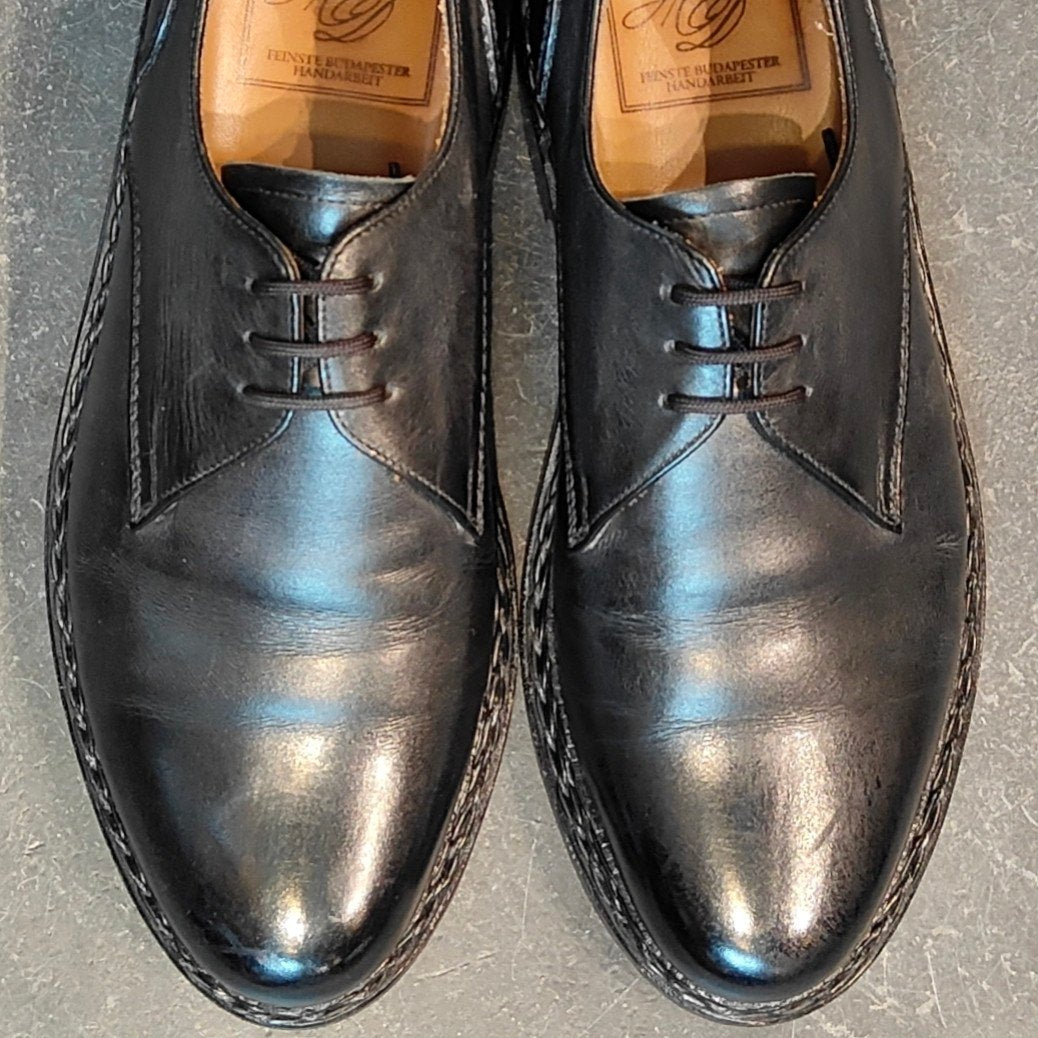 希少 美品 【HEINRICH DINKELACKER】ハインリッヒディンケラッカー プレーントゥ カーフ ブラック サイズ UK7.5 BUDAラスト