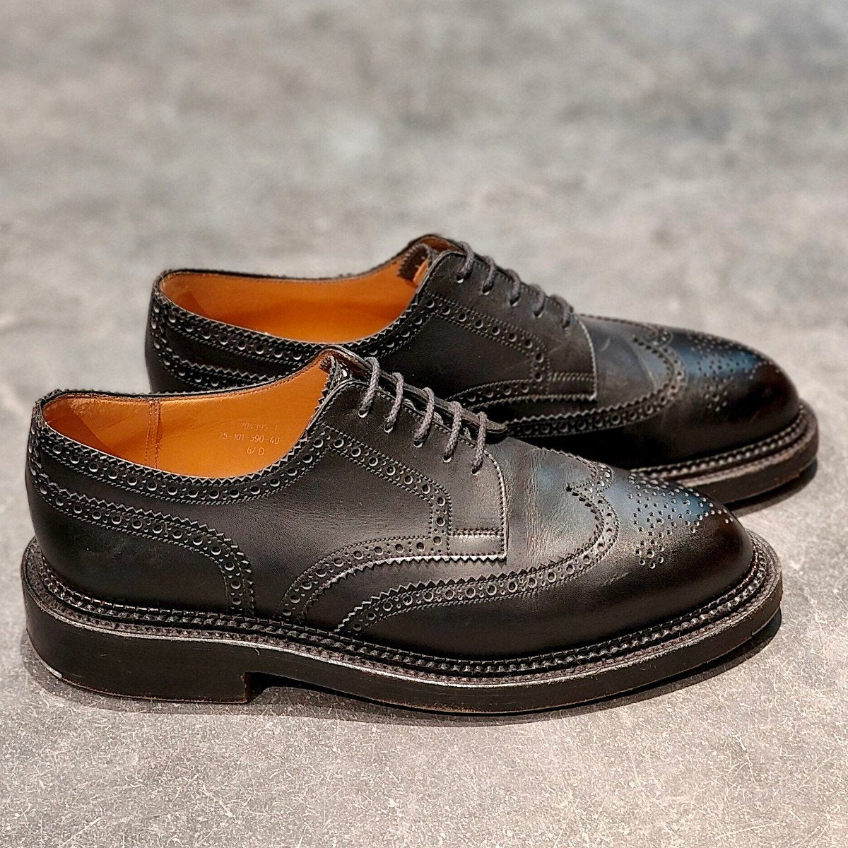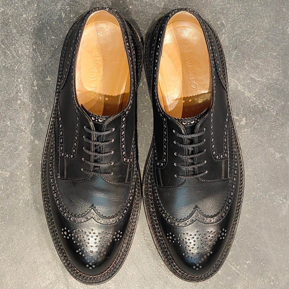 「 美品【J.M.WESTON】ジェイエムウエストン 590 トリプルソールダービー ウイングチップ カーフ ブラック サイズUK6.5D 25ラスト 参考定価¥275,000- 」