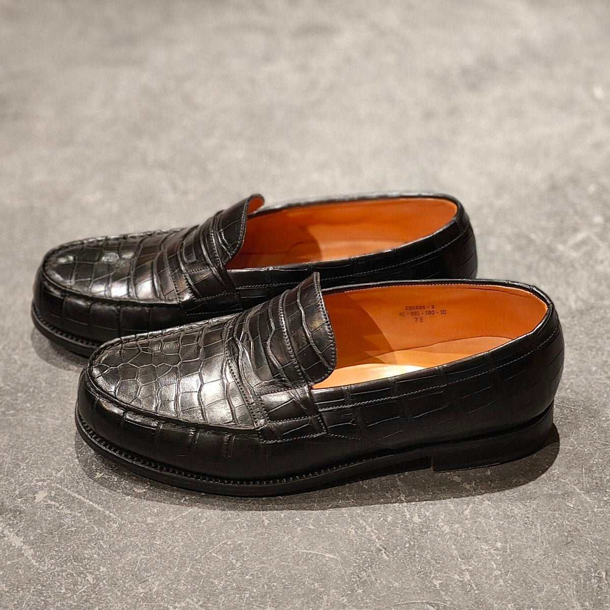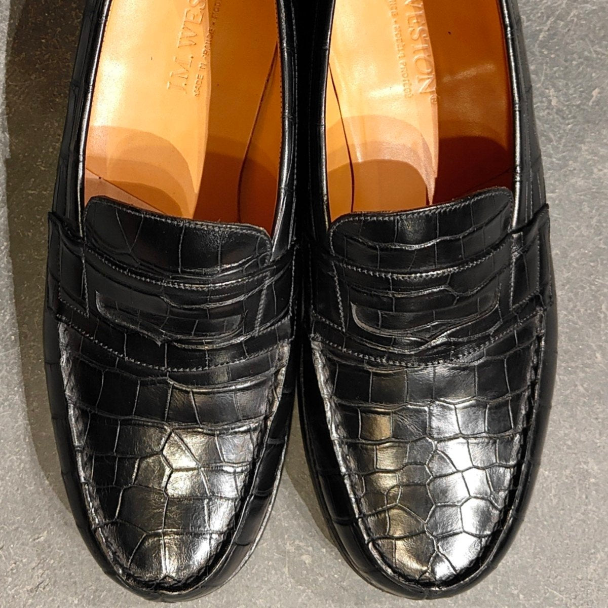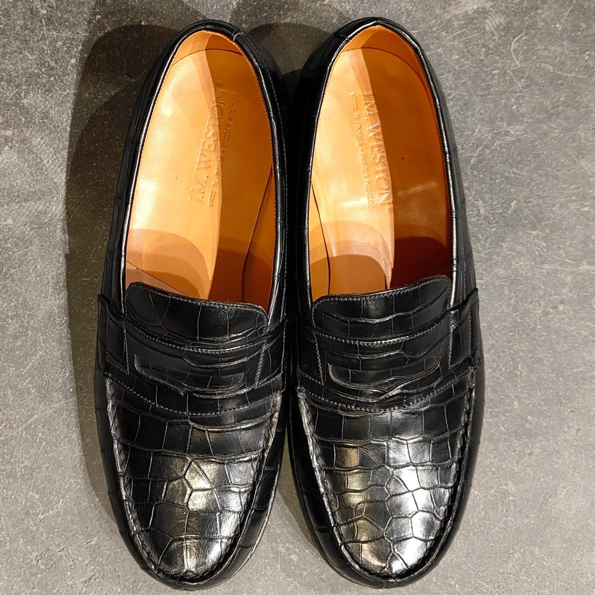 「 希少 使用数回【J.M.WESTON】ジェイエムウエストン 180 シグニチャーローファー アリゲーター ブラック サイズUK7E 41ラスト 参考定価 ¥825,000- 」