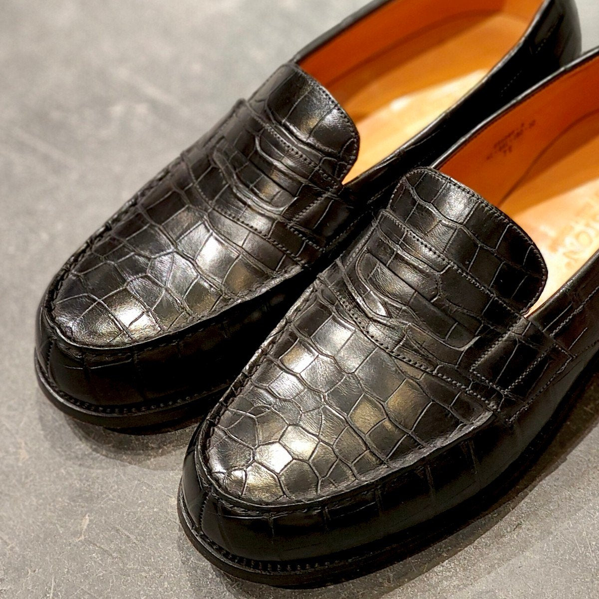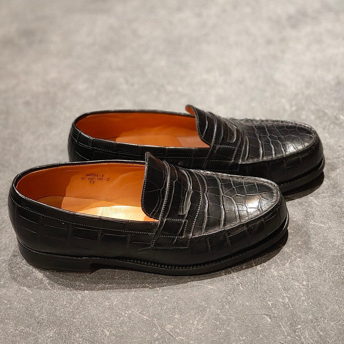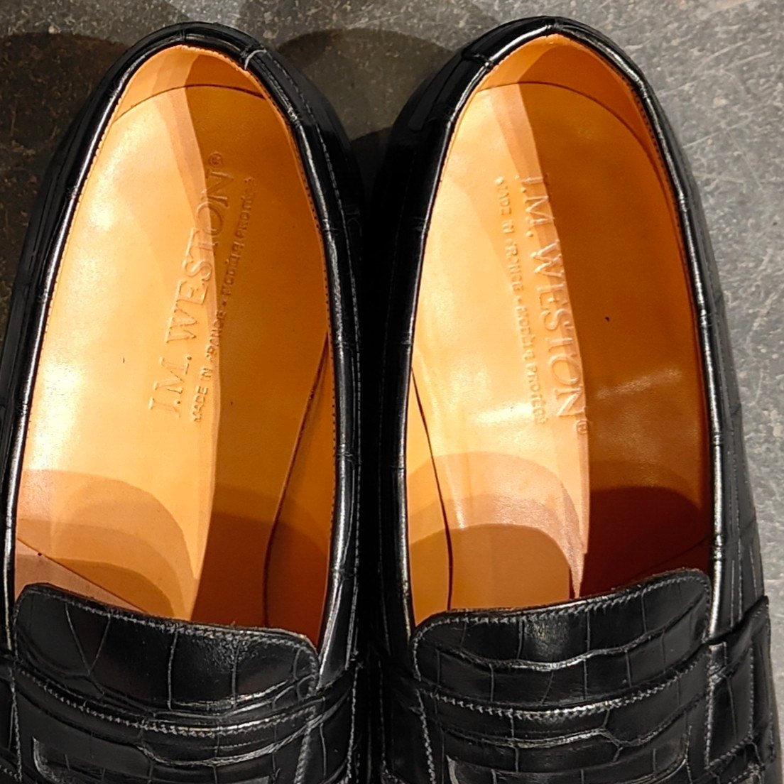 「 希少 使用数回【J.M.WESTON】ジェイエムウエストン 180 シグニチャーローファー アリゲーター ブラック サイズUK7E 41ラスト 参考定価 ¥825,000- 」