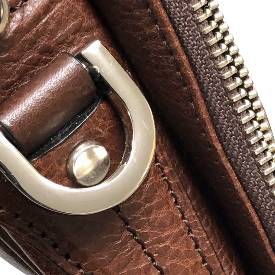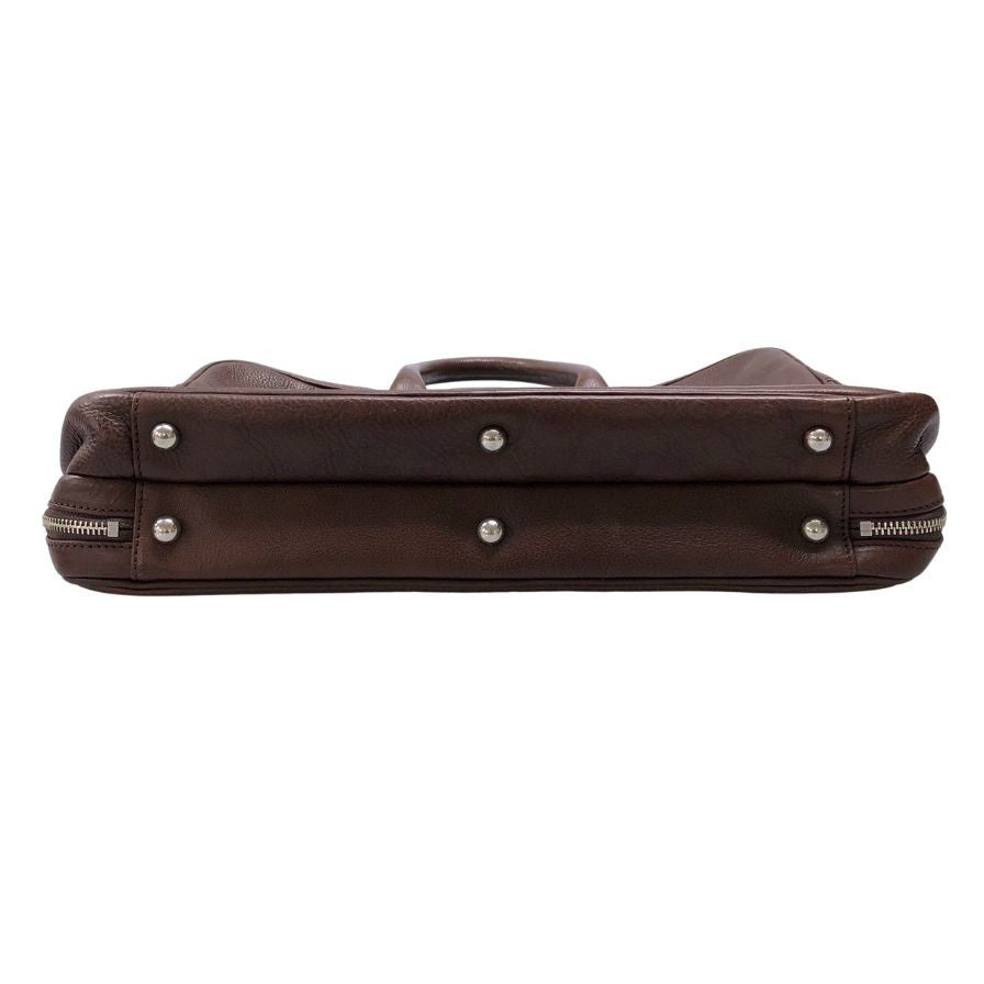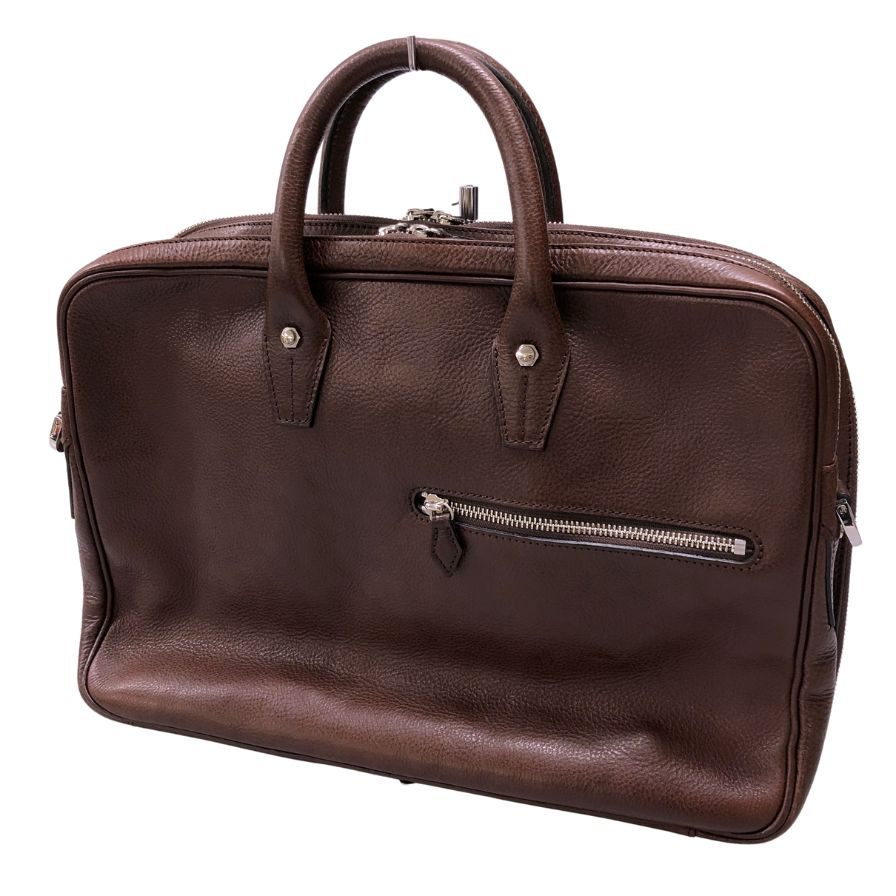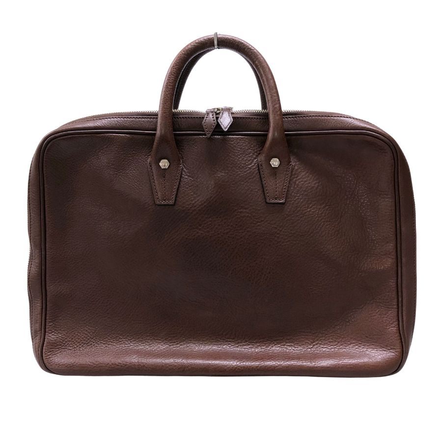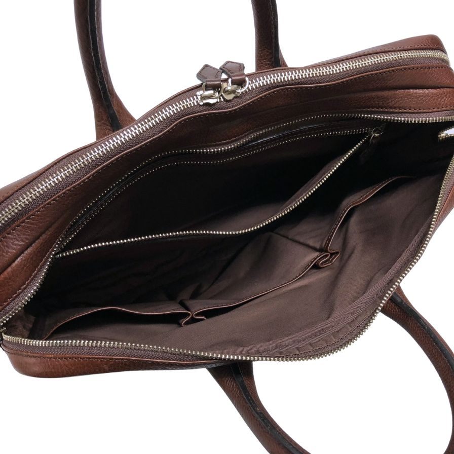 万双 ダブル天ファスナー ブリーフケース オイルド グレインレザー ブラウン
