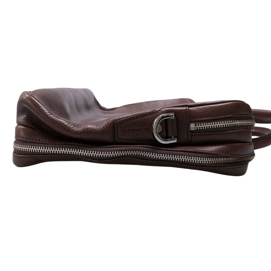万双 ダブル天ファスナー ブリーフケース オイルド グレインレザー ブラウン【LA】