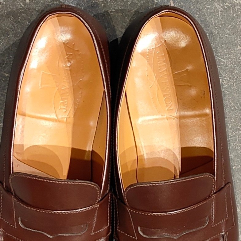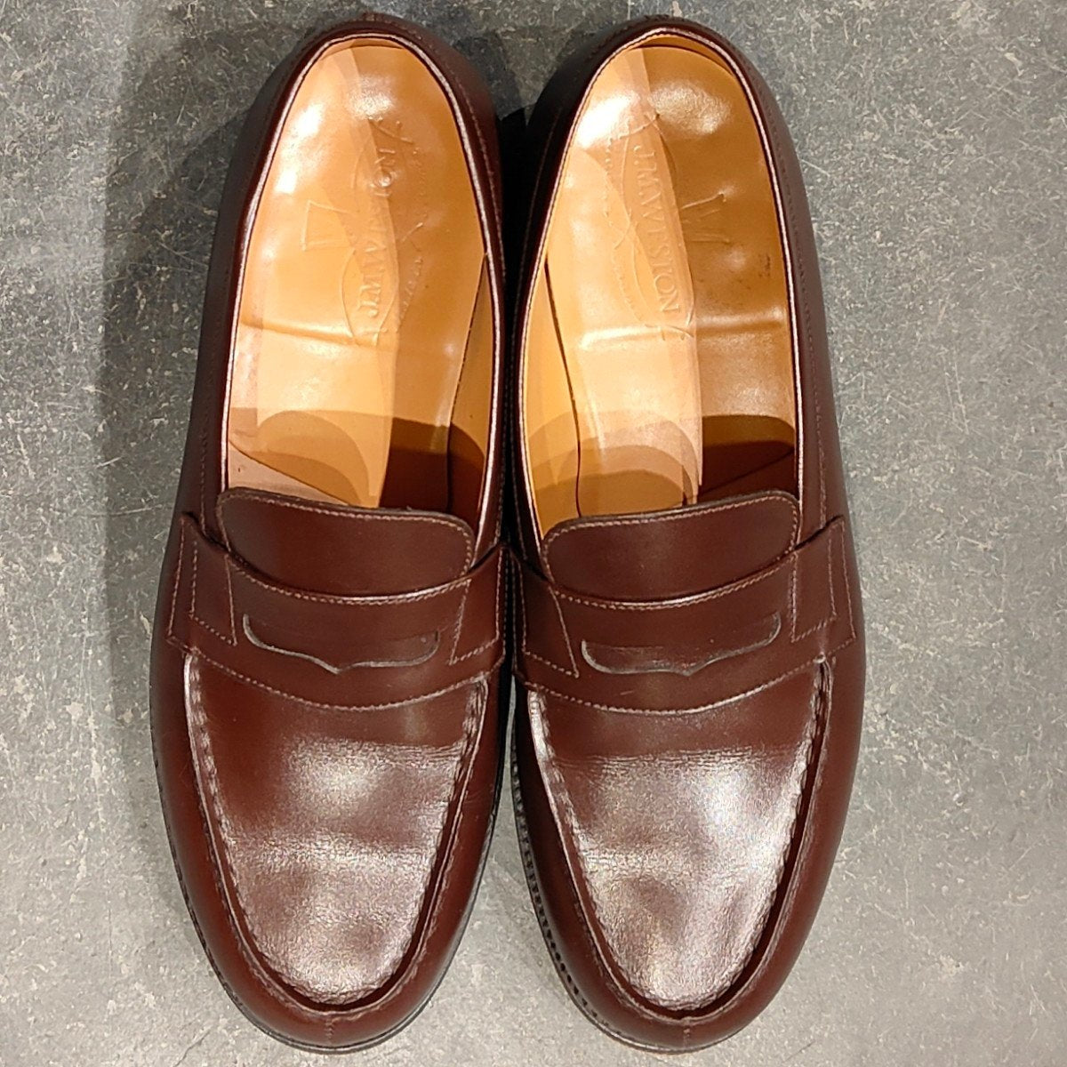「 使用数回 【J.M.WESTON】ジェイエムウエストン 180 シグニチャーローファー ボックスカーフ チョコレート サイズ UK6.5D 41ラスト 参考定価¥156,200- 」