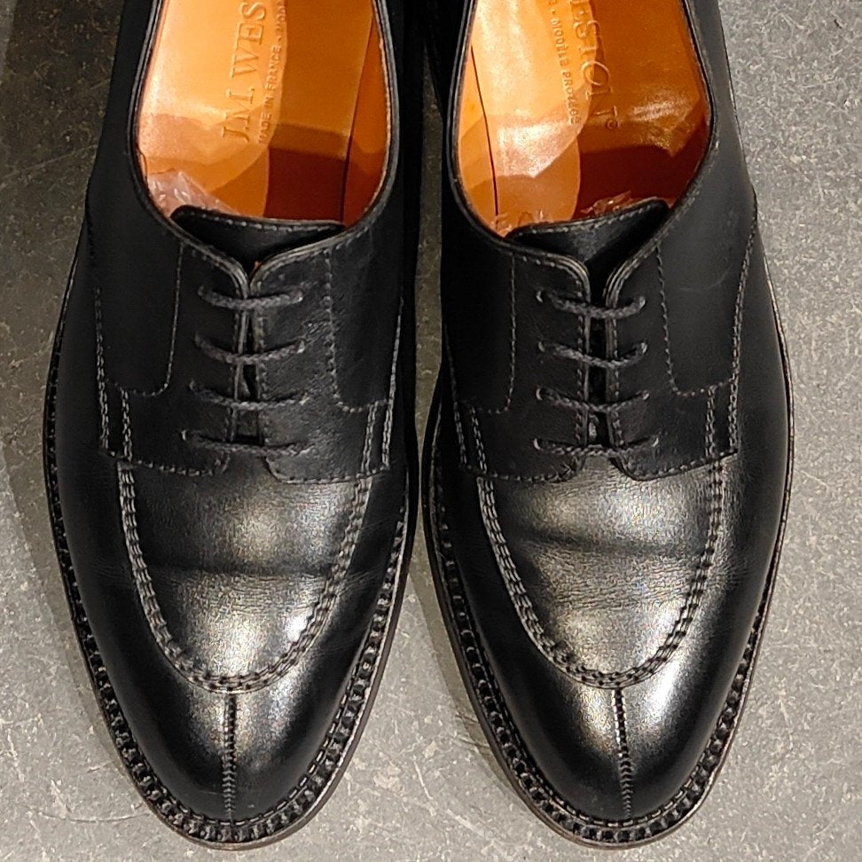 希少 極美品 【J.M.WESTON】ジェイエムウエストン 696 スプリットトゥダービー Uチップ ロシアンカーフ ブラック サイズ UK7C 23ラスト